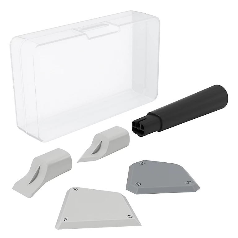 Tout le nécessaire pour l’extraction et le lissage de joints. Les têtes d’extraction inclinées se glissent directement en dessous du joint et sont durables, sans rayer la surface. 6 angles de lissage profilés pour différentes tailles de joint/cordon.