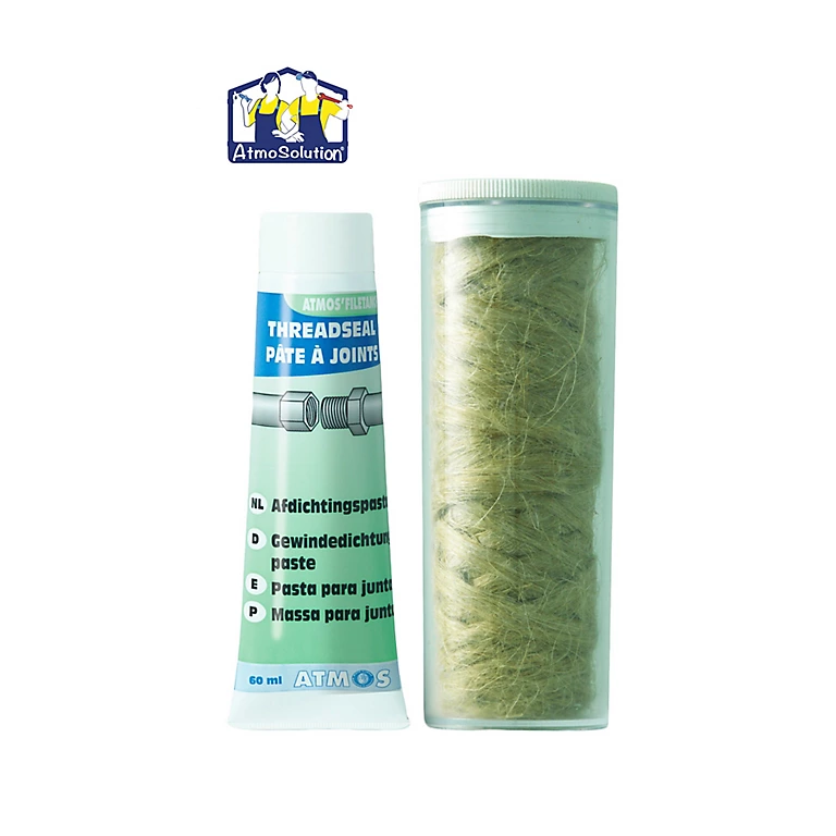 Kit étanchéité Atmoslin 60ml + filasse 40gr. Contenance : 40 g. Inclus : Filasse pâte à joints.