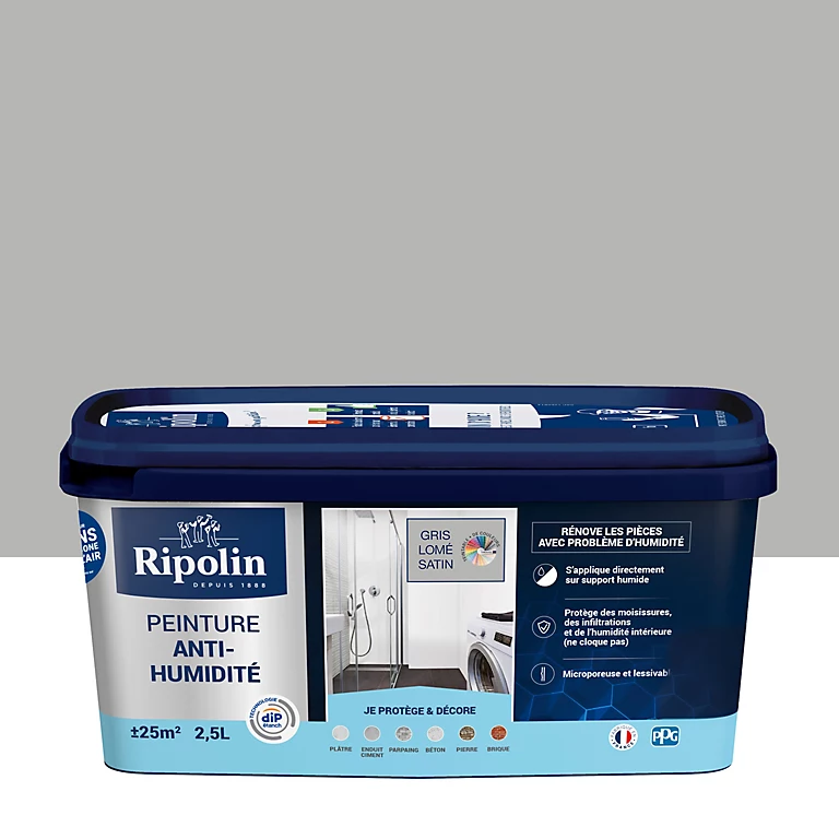 Peinture anti-humidité intérieur satin gris lome Ripolin 2,5L