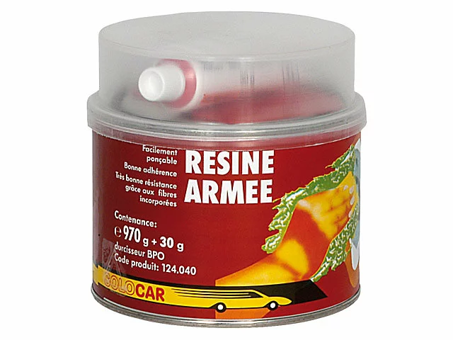 Résine polyester bicomposant chargée de fibres de verre pour réparer, rapidement et de façon durable, des trous dus à la rouille. S’utilise directement sur le métal. Livrée avec son durcisseur BPO. 1 kg.Peut être appliqué en couches de toutes épaisseurs sans risques de crevasses.