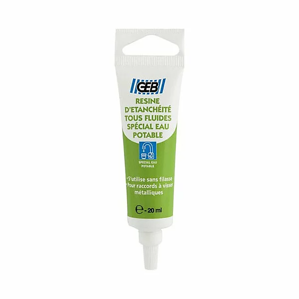 Résine d’étanchéité GEB spécial eau potable pour raccords à visser métalliques en tube de 20 ml