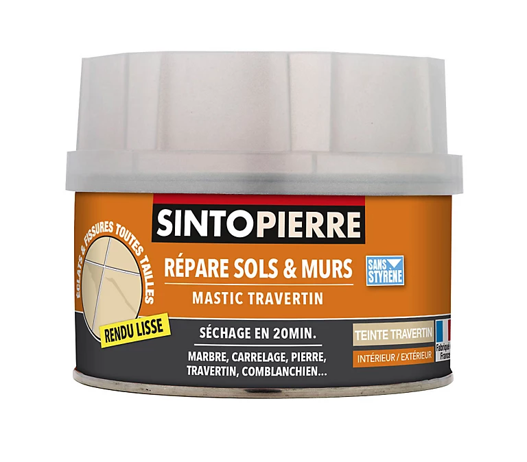 Le mastic polyester Sintopierre reconstruit et répare tous types de pierres et marbres.